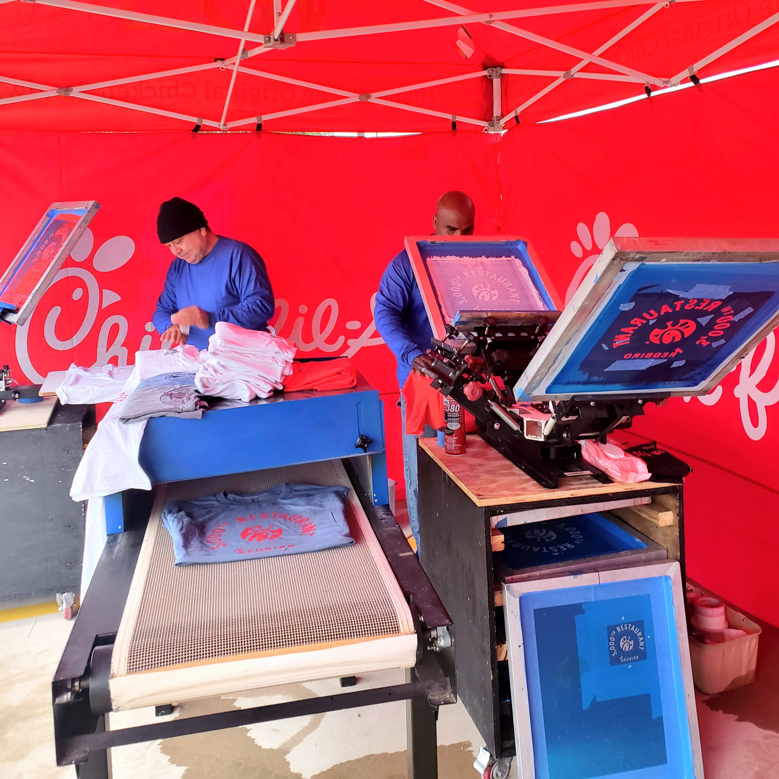This wasn’t our first rodeo, and it won’t be our last! We provide live event printing nationwide, traveling across the USA to bring the best on-site customization services to clients. Whether you’re in Dallas, New York, Los Angeles, Miami, Chicago, or anywhere in between, we’re ready to set up and bring personalized apparel to your next event!